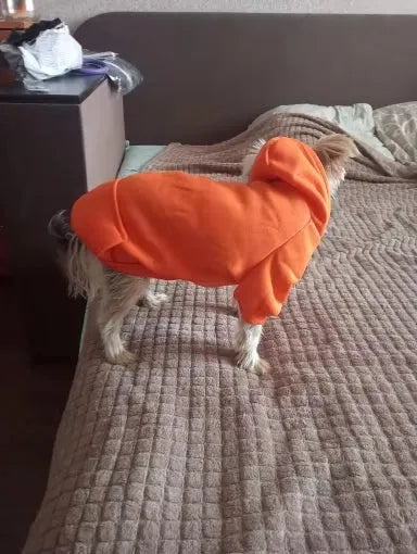 "OMG, this hoodie is the cutest thing ever! Bought it for my Chihuahua and it fits perfectly. Keeps her warm and she looks super adorable. Great for chilly walks. Highly recommend for small dog owners."